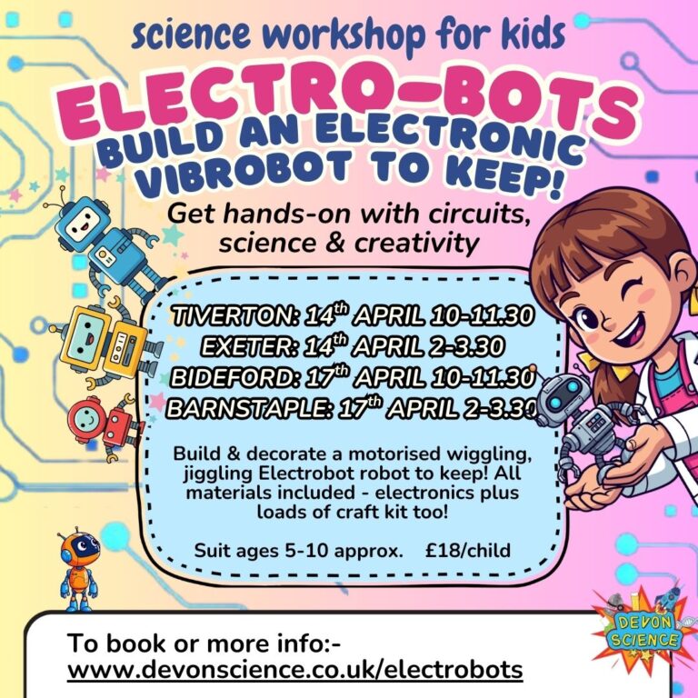 Ruth’s science sessions have been wonderful for my children recently and they have all got so much from them. It really brings the fun of science to life for them and makes them enthusiastic about it. So much so that when my daughter had a day at school recently where they had to dress as what they would like to do when they are older she went as a scientist!!Actually we have been so impressed with the sessions that we booked Ruth for my daughters birthday party and the kids all had a ball. Ruth’s enthusiasm for the subject is infectious. I would highly recommend her sessions as well as the birthday parties! They are also amazing value for money.Ellie, Mid Devon