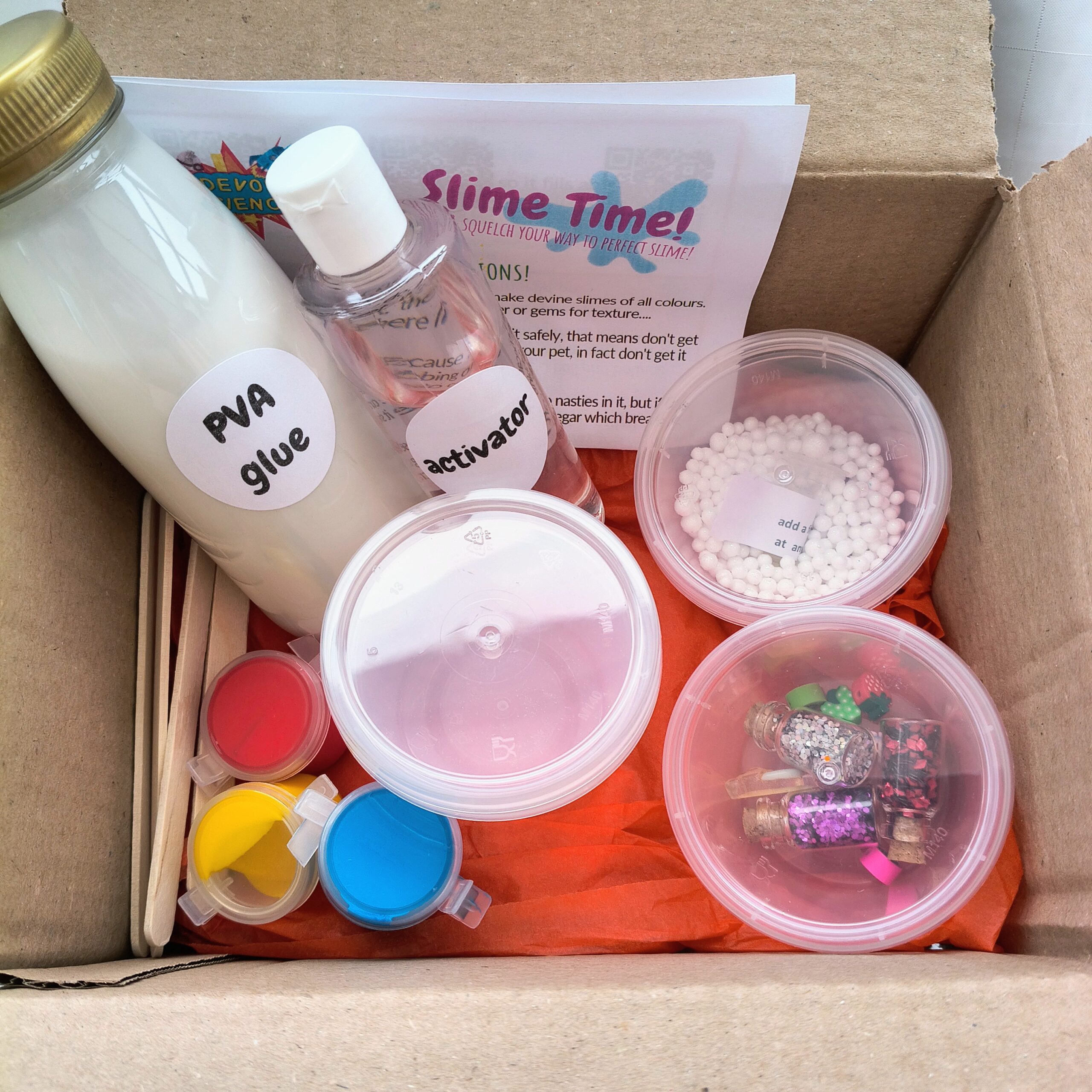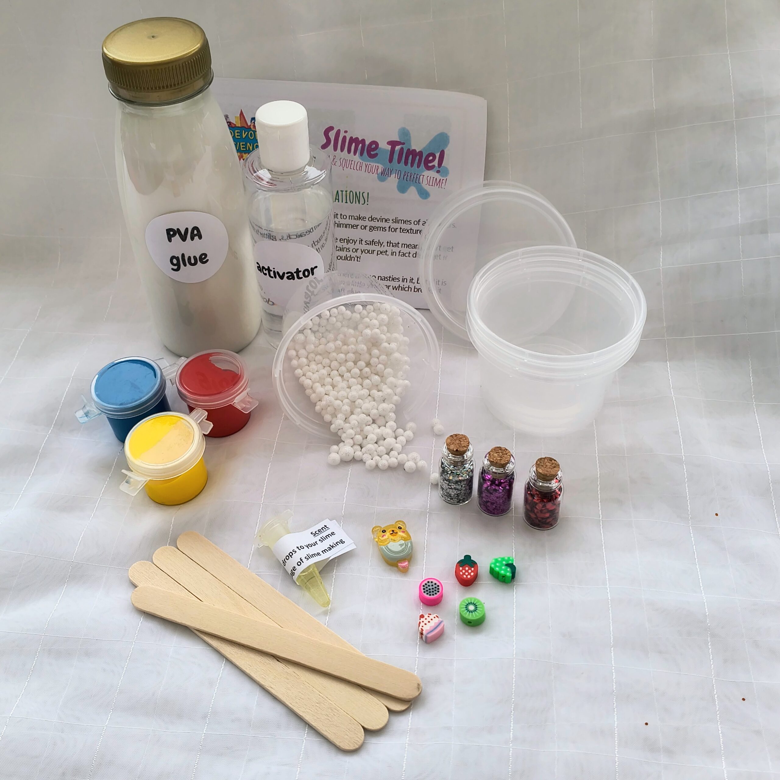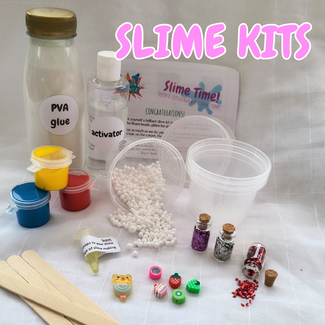 All you need for slime! With this kit, you have everything you need to make colourful, textured slimes such as floam-slime, beaded slime, scented, jelly & glittery slime. Instructions included with links to our online slime-making and science tutorials.