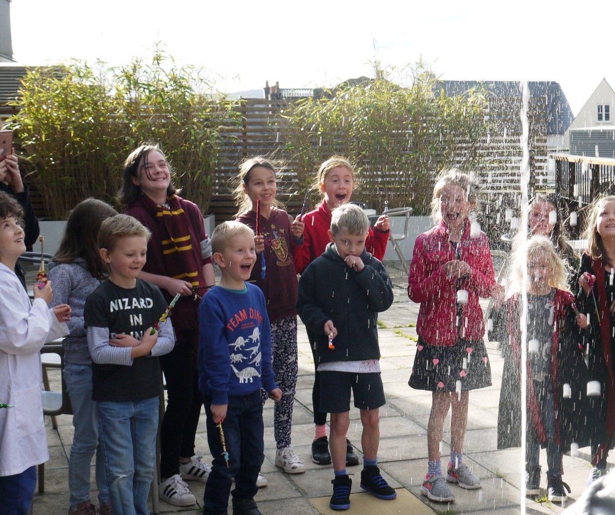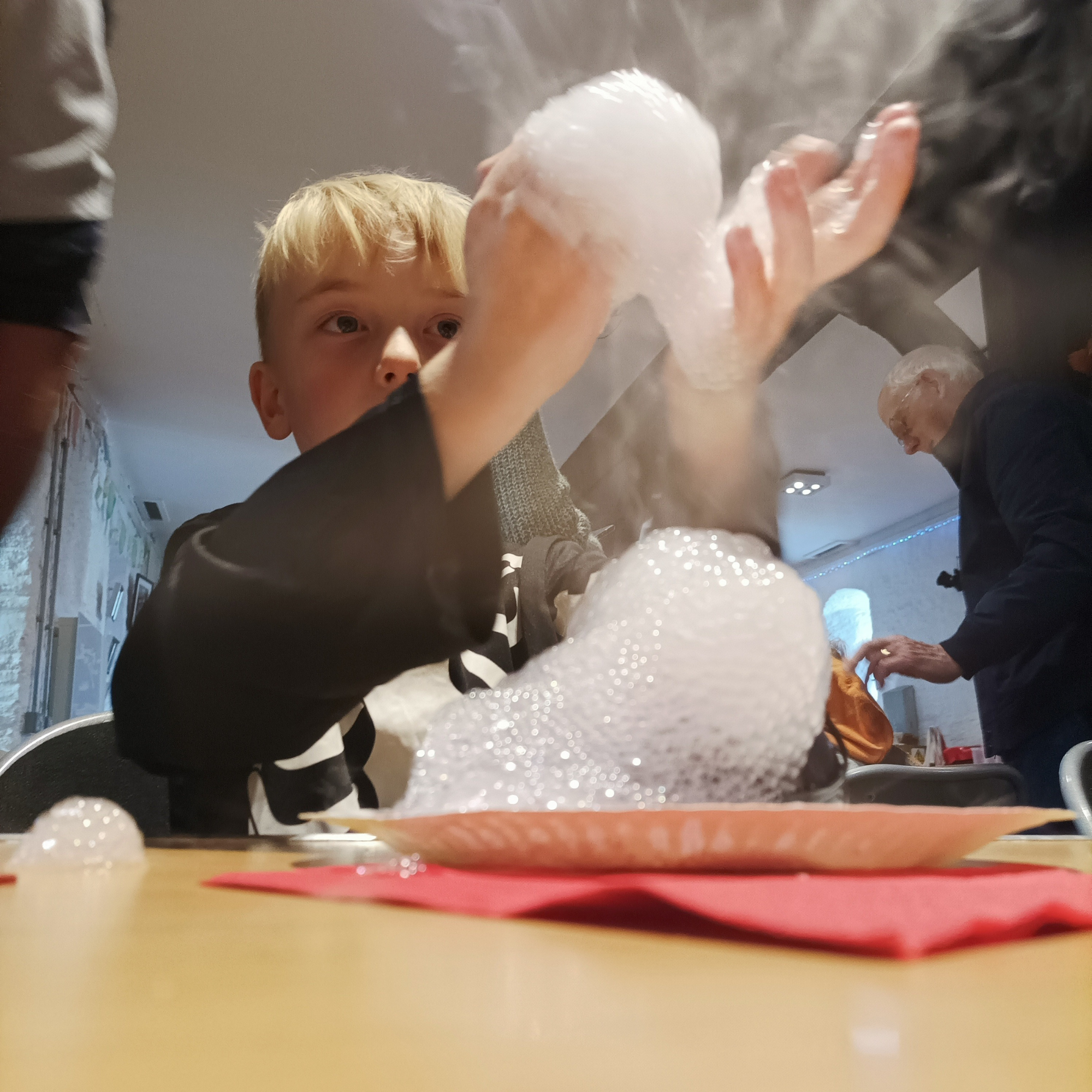 When the entertainment is over – we have a big finale experiment – we give the birthday child a card and little gift from us, and say “Goodbye” to everyone. The youngsters are then handed over to you for food and cake time. We tidy up any mess, clean surfaces and take our rubbish away with us.