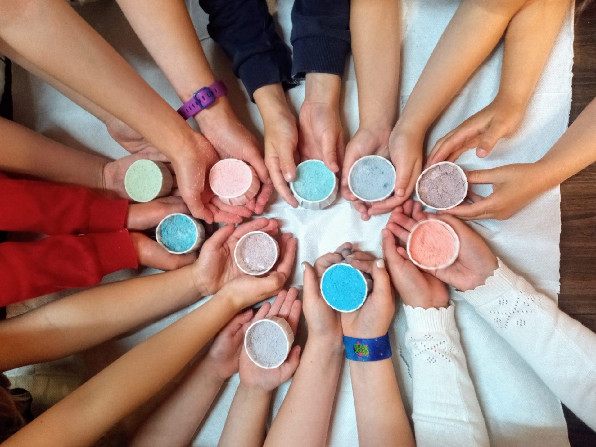 Depending on the theme you choose (Crazy Chemistry, Slime, Rainbow Science, Dry Ice or Magical Potions) children will take home items they’ve made, e.g. lava lamp & slime in the Crazy Chemistry Party, or colour changing bracelet, bath bomb & lava lamp for the Rainbow Science, for example. You can also order extra party favours too – such as sweets, or our sustainable individually boxed mini science kits for the science fun to continue at home.